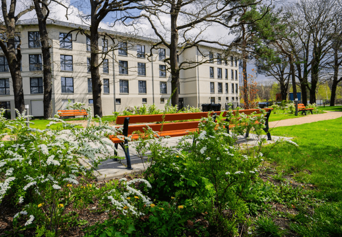 Diese moderne und familiäre Einrichtung liegt in unmittelbarer Nähe zum idyllischen Naherholungsgebiet Dresdner Heide und ist umgeben von einer waldreichen, erholsamen Umgebung. Hier wird den Bewohner:innen ein liebevolles Zuhause mit insgesamt 100 Betten geboten, verteilt auf drei wohnliche und gut strukturierte Wohnbereiche.