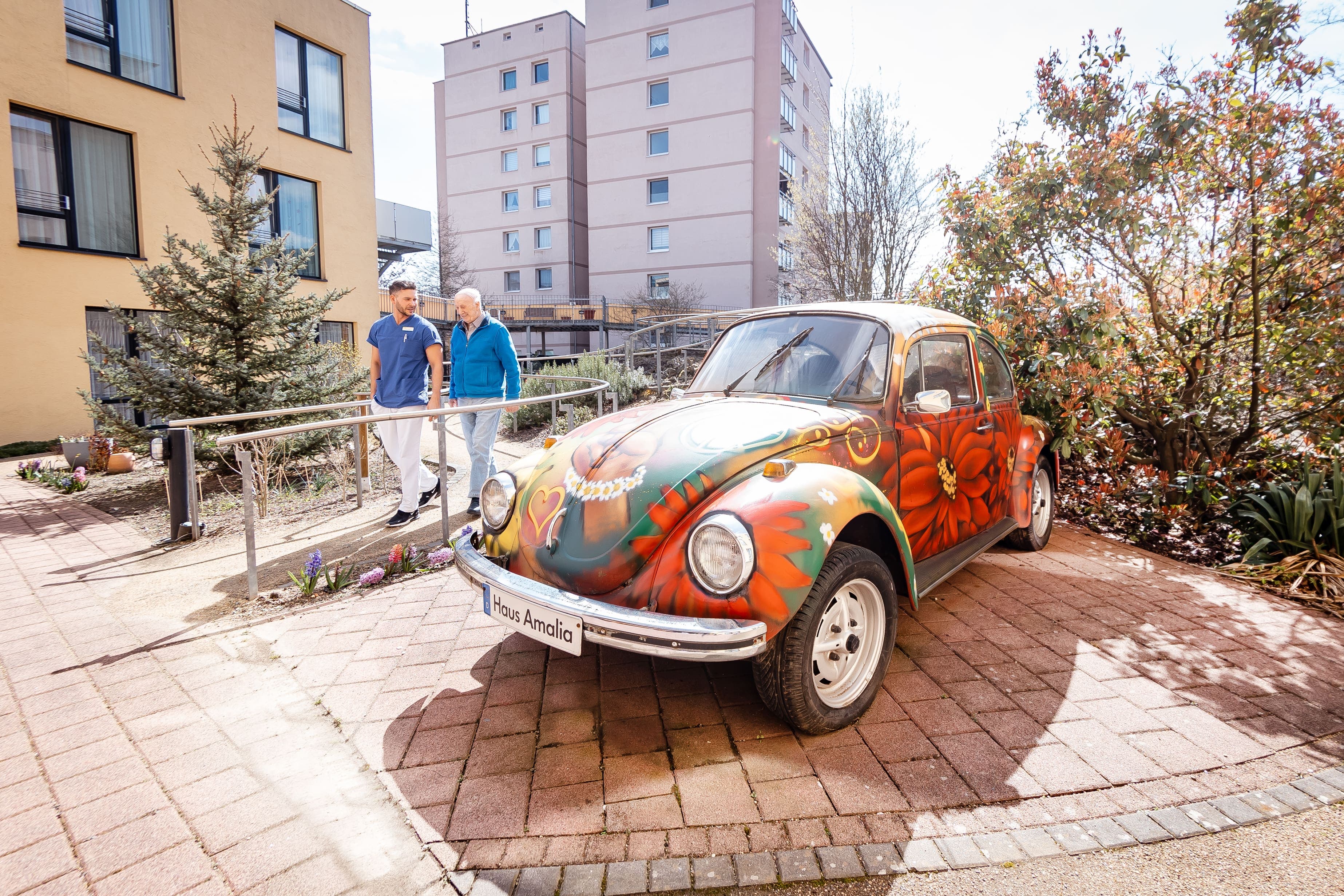 Herzlich willkommen im Haus Amalia! Unser Haus hat im Sommer 2007 geöffnet und bietet insgesamt 77 Plätze für Patienten und Patientinnen. Es gibt viele Einkaufs- und Freizeitmöglichkeiten in der fußläufigen Umgebung, was auch ein großer Bonus für unsere Angestellten ist. Zudem haben wir eine Bushaltestelle direkt vor der Tür, was einen Anschluss an viele weitere öffentliche Verkehrsmittel bietet. Unser bunt gemischtes Team setzt sich aus 63 Mitarbeitenden zusammen.